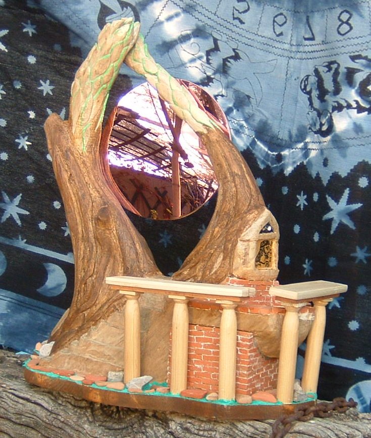 AUTORE: LINO LATTANZI ANNO: 2007 TIPOLOGIA: Legno + disco di silicio + mattoncini in terracotta SOGGETTO: Interpretazione della leggenda di Filemone e Bauci (Ovidio - Metamorfosi VIII)