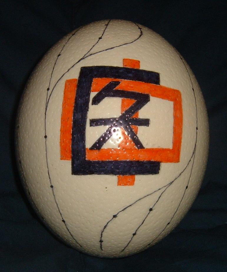 AUTORE: LINO LATTANZI ANNO: 2000 TIPOLOGIA: intaglio su uovo di struzzo SOGGETTO: decorazione uovo con logotipi gabbiano